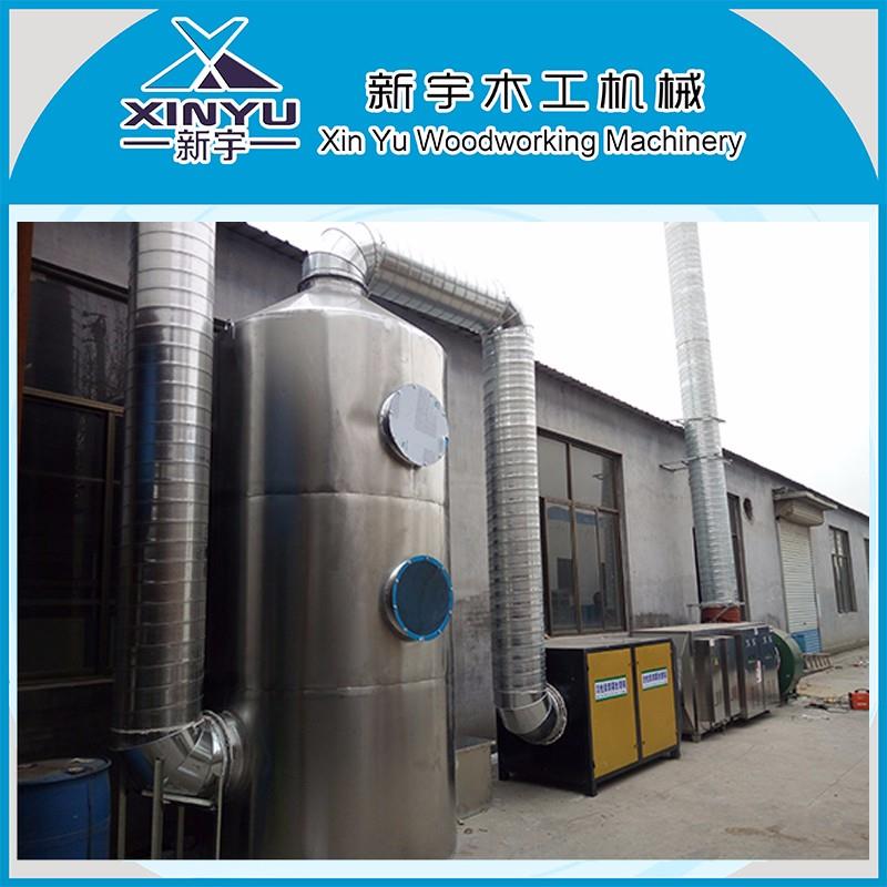 工作原理:帶有粉塵,有害廢氣、煙霧的氣體從吸塵吸氣管道進(jìn)入旋風(fēng)填料噴啉塔,經(jīng)過不銹鋼旋風(fēng)板兩次改變風(fēng)向使氣體在塔內(nèi)來回旋轉(zhuǎn),通過兩種不同的填料層,再經(jīng)過兩次的噴淋,使粉塵和有害氣體,及煙霧的有效的分解稀釋,再通過除霧層除去噴淋所帶來的水霧,利用風(fēng)機(jī)從排風(fēng)管道排除,根據(jù)有害氣體和煙霧的濃度:加上等離子光氧等電子設(shè)備配套使用,這樣處理效果會(huì)更佳。